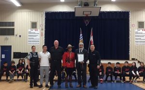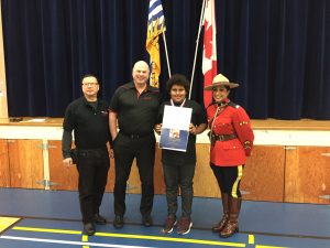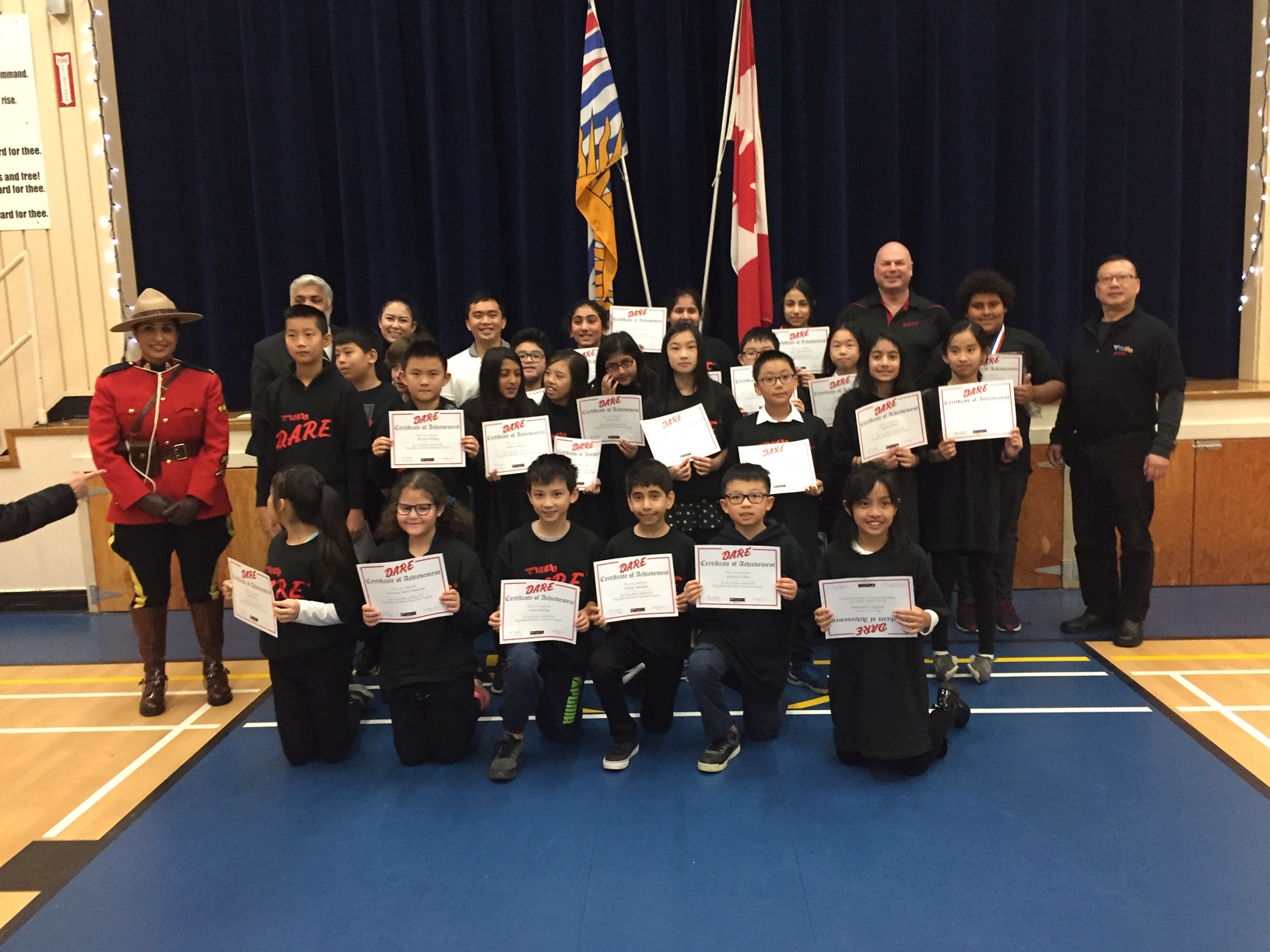 On December 11th, D.A.R.E. BC Society had the privilege of recognizing a long-standing D.A.R.E. teacher, Mr. Nav Badyal and a Grade 5 student, Matthew Del Rosario, receiving the Good Citizen Award. The D.A.R.E. Teacher Appreciation Certificate and Good Citizen Award is a great achievement and was presented at the James Thompson Elementary D.A.R.E. Graduation. Mr. Badyal was also presented a Certificate of Appreciation on behalf of the Officer in Charge at the Richmond Detachment. Cst. Bal Kandola, Steve Ternes (President), Mike Yau (Past-President), David Yau (Board Member), Jal Ico (Program Administer), Nadia Samaei-motlag (Partner Relations Manager), and other D.A.R.E Officers were all in attendance for this special day of celebration for the students that graduated from the D.A.R.E. Program.
