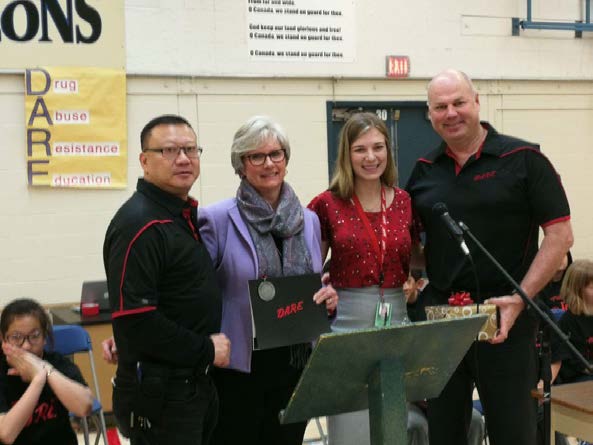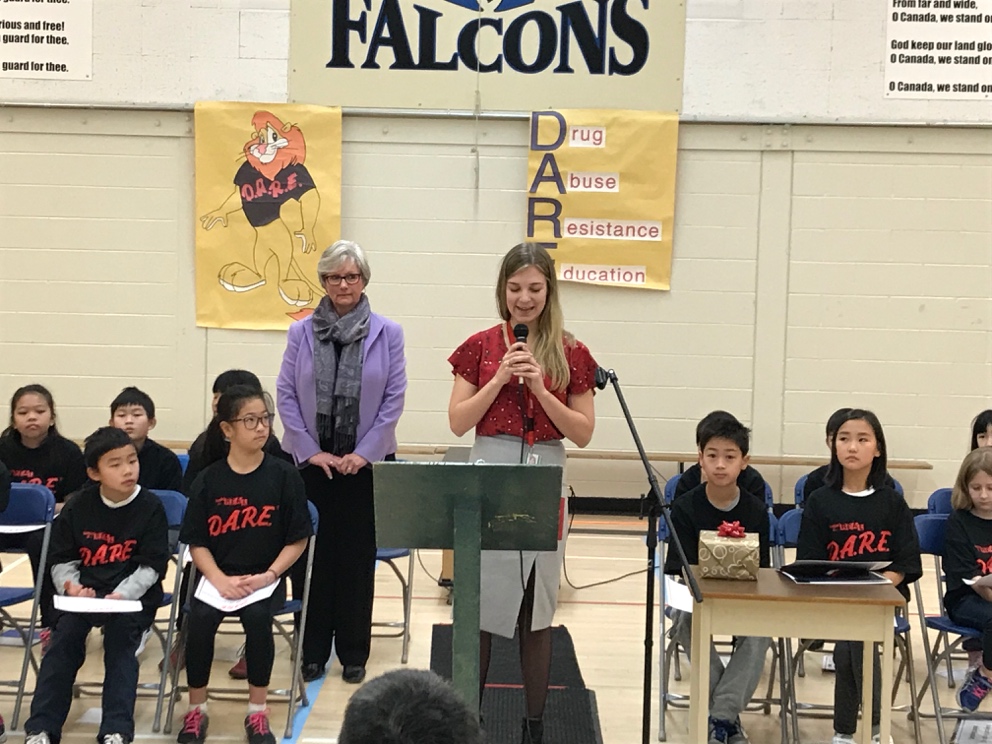On December 9th D.A.R.E. BC Society had the privilege of recognizing a long-standing D.A.R.E. teacher, Ms. Lori Davis. This D.A.R.E. Teacher Appreciation Certificate was the first of its kind and was presented at the Ferris Elementary D.A.R.E. Graduation. Mike Yau (President), Steve Ternes (Vice-President), Kate Meffen (Partner Relations Manager), and Esther Ho (Board Member) were all in attendance for this special day of celebration in which 68 students graduated from the D.A.R.E. Program.