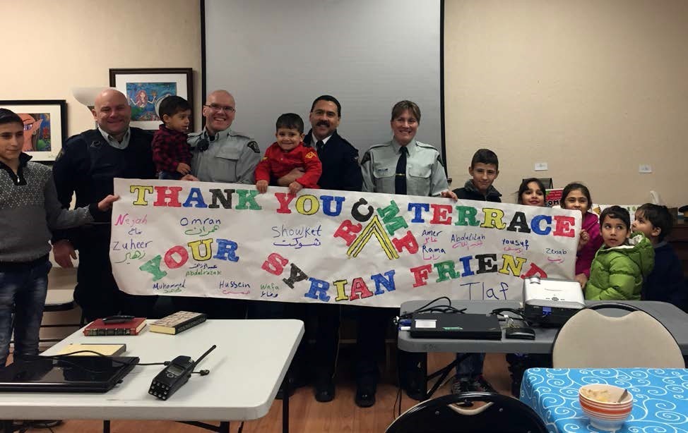 Cpl. Mike Dame of Terrace SPS unit attended a welcoming party for the Syrian newcomers on Friday night at the Terrace Detachment. There is now a total of three Syrian families living in Terrace, B.C. Cpl. Dame conducted a presentation on SPS’s role and programs in the community. A copy of the DARE kiR curriculum along with letters to parents that were translated in Arabic will be presented to the newly arrived parents so they could learn more about prevention services for their children.